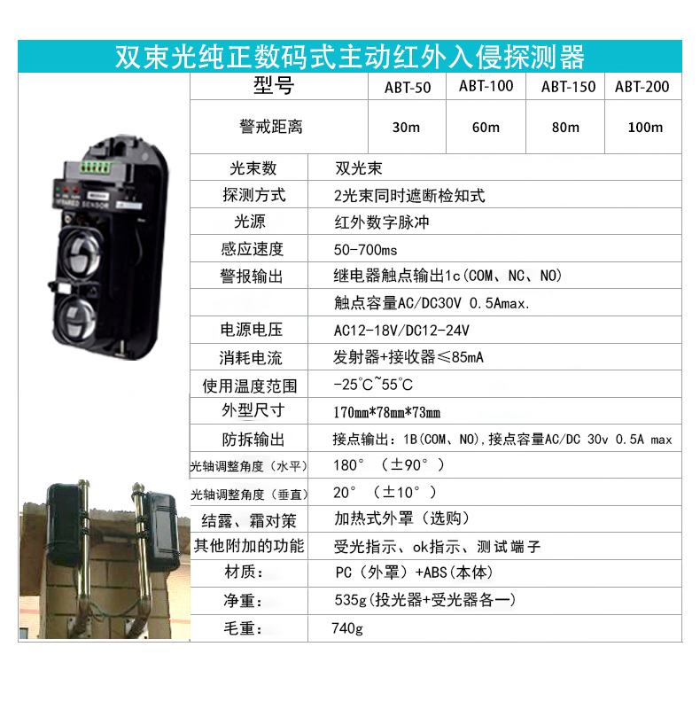 ABE三光束數碼紅外對射室外探測(cè),廠(chǎng)家直銷 1、防雷擊電路設計 2、專業抗幹擾光學外罩 3、日本同禾大功率 紅外發射芯片 4、SMT工藝
